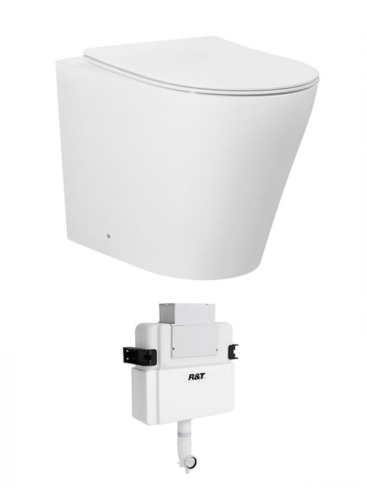 Alzano Wall Face Pan Hurricane Flush Matte White with R&T LR Cistern, No Push Plate