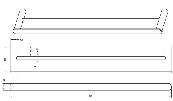 Vetto 750mm Matte Black Double Towel Rail