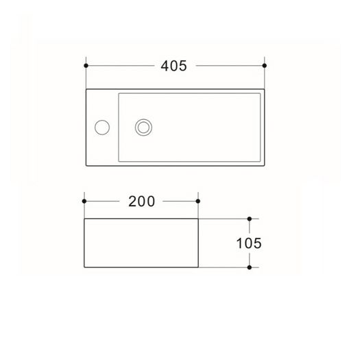 - Compact Wall Hung 405x200x105 R/H Basin