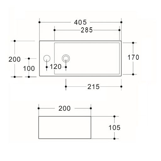- Compact Wall Hung 405x200x105 R/H Basin