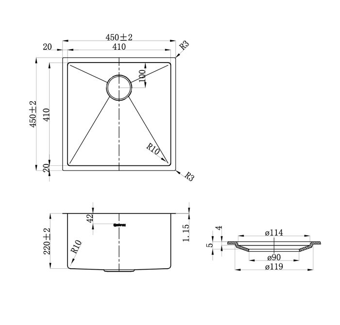 Axon Sink 45S 450x450x220