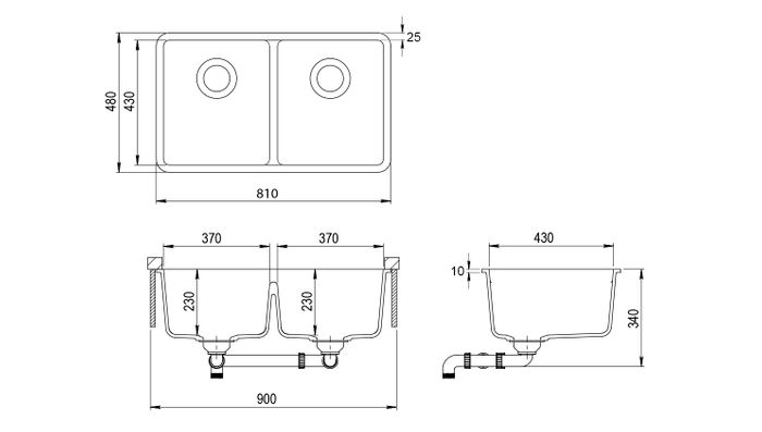 Granite Sink 810x480 Black Double Bowl