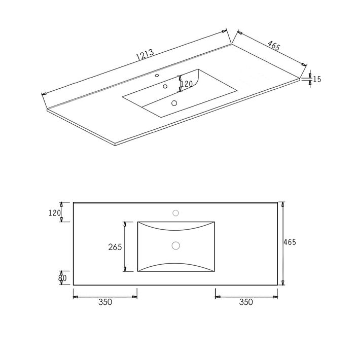 - Slim Line Ceramic Top 1200x460x170 with Taphole & Overflow