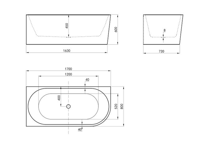 Left Corner 1700X800X600 Gloss White Bathtub NF