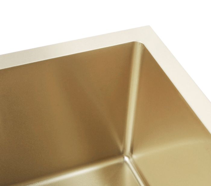 Brushed Gold Finish High QualityTop/ Under Mount1.2mm 304 Grade Stainless SteelRadiused Corners for Easy CleaningIdeal for Kitchen ApplicationsBasket Wastes IncludedOuter Dimension 760 x 450 x 220mm